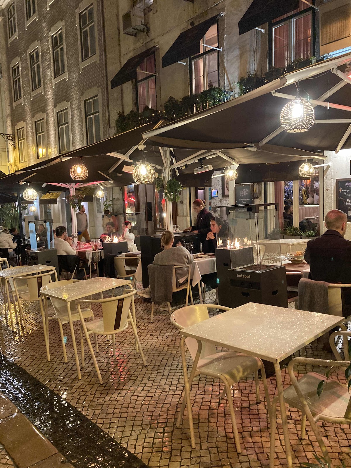 The location was excellent, a few minutes walk from the Metro and from the major Rua Augusta which led down to the river. There were lots and lots of eateries nearby and ATMs everywhere. I don’t know why Lisbon needs so many. Most eateries had an outside area, where the Portuguese love to sit even in the coldest, wettest weather:
