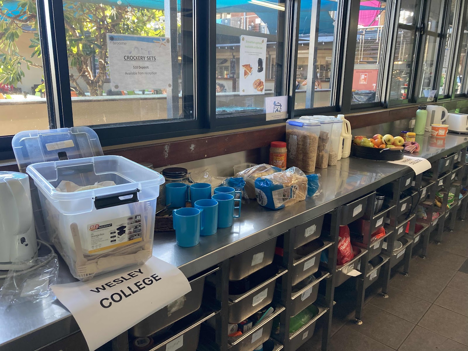 These are all young Indonesians, who monopolise the kitchen at dinner time, cooking up spicy food. They each have their own mini rice cooker and these are all lined up on the kitchen bench. I believe they are working in Broome picking fruit.
