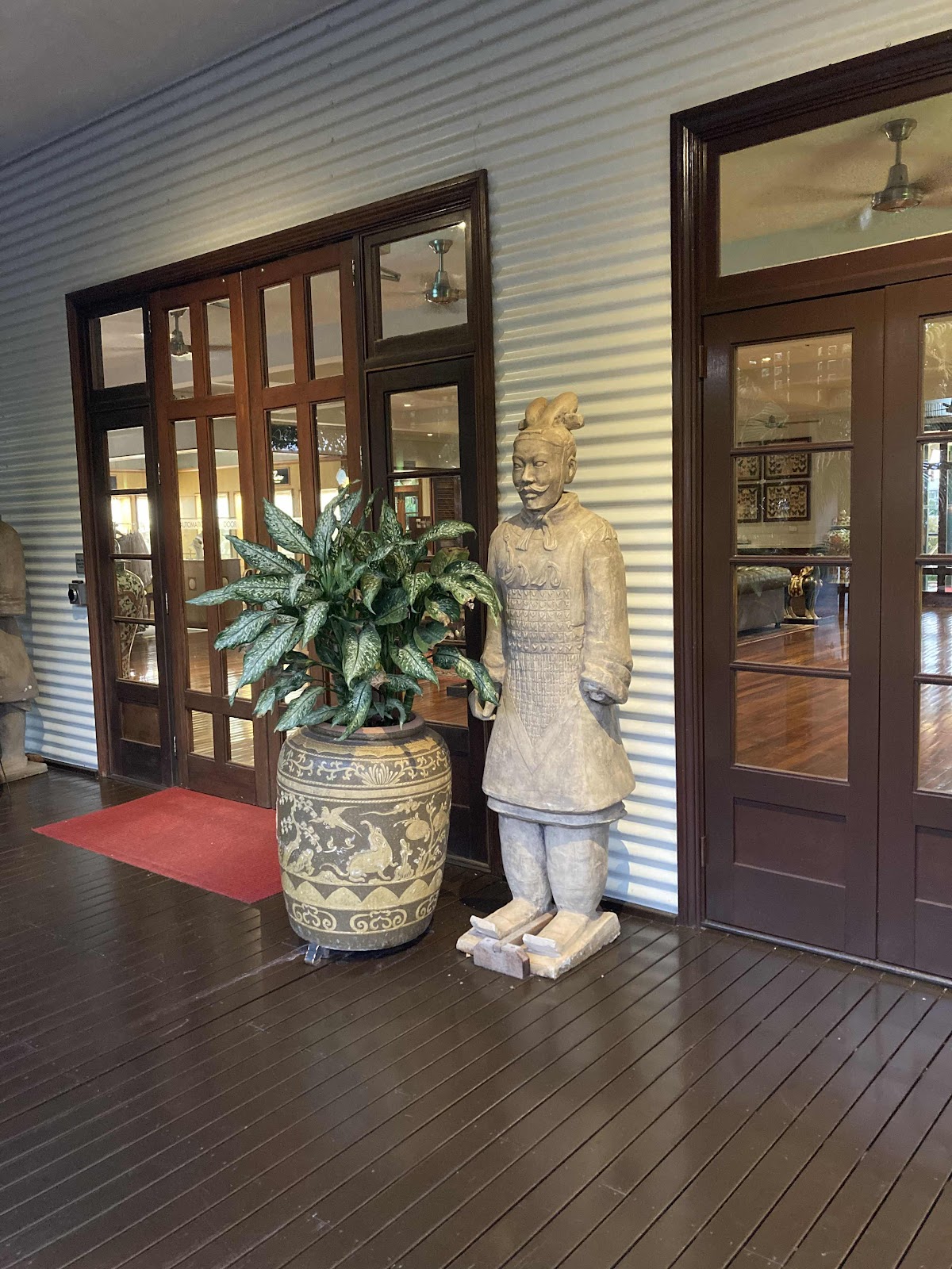A coach-load of tourists was just arriving at the hotel and were receiving a welcome drink of bubbly, only to be told they had half an hour before being taken out to dinner. It’s all go on these tours!
