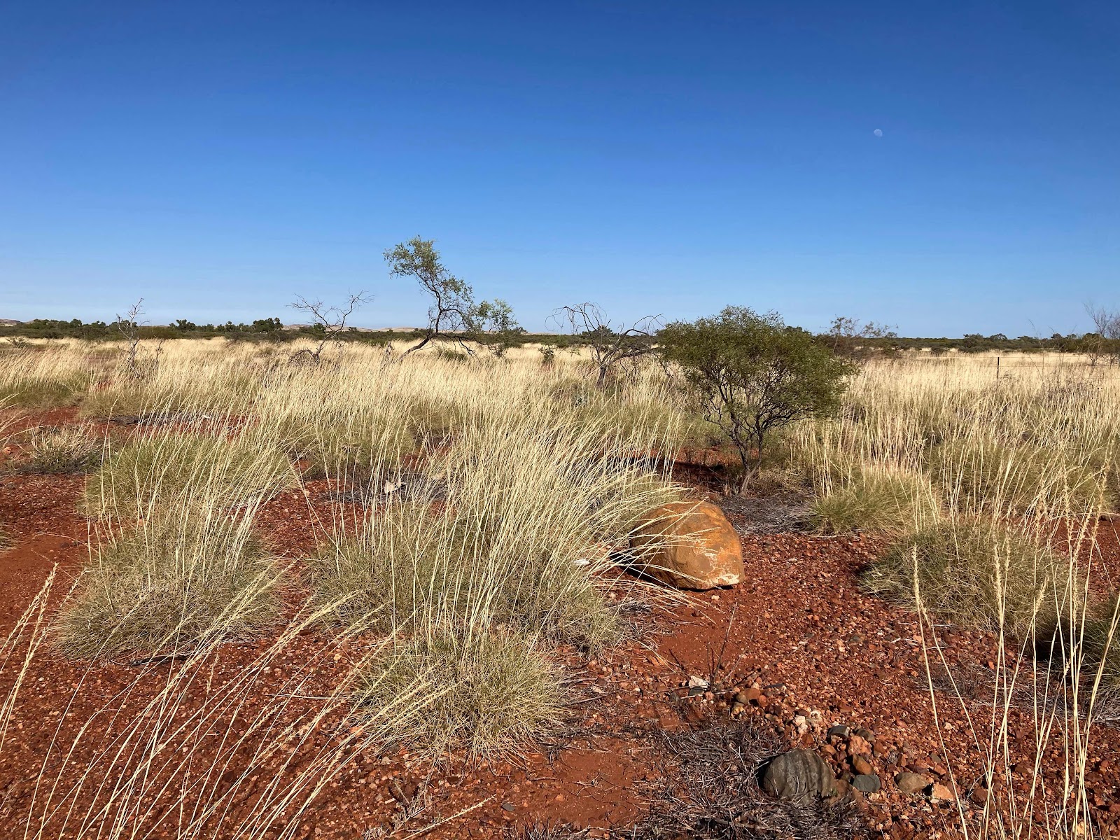 My plan was to have breakfast at Fortescue Roadhouse, which was 1.5 hours down the road. When I got there it was all fenced off and boarded up. What a disappointment! I pulled off the road in a lay-by just afterwards and drank some coffee from my flask. This was my view over the spinifex grass: