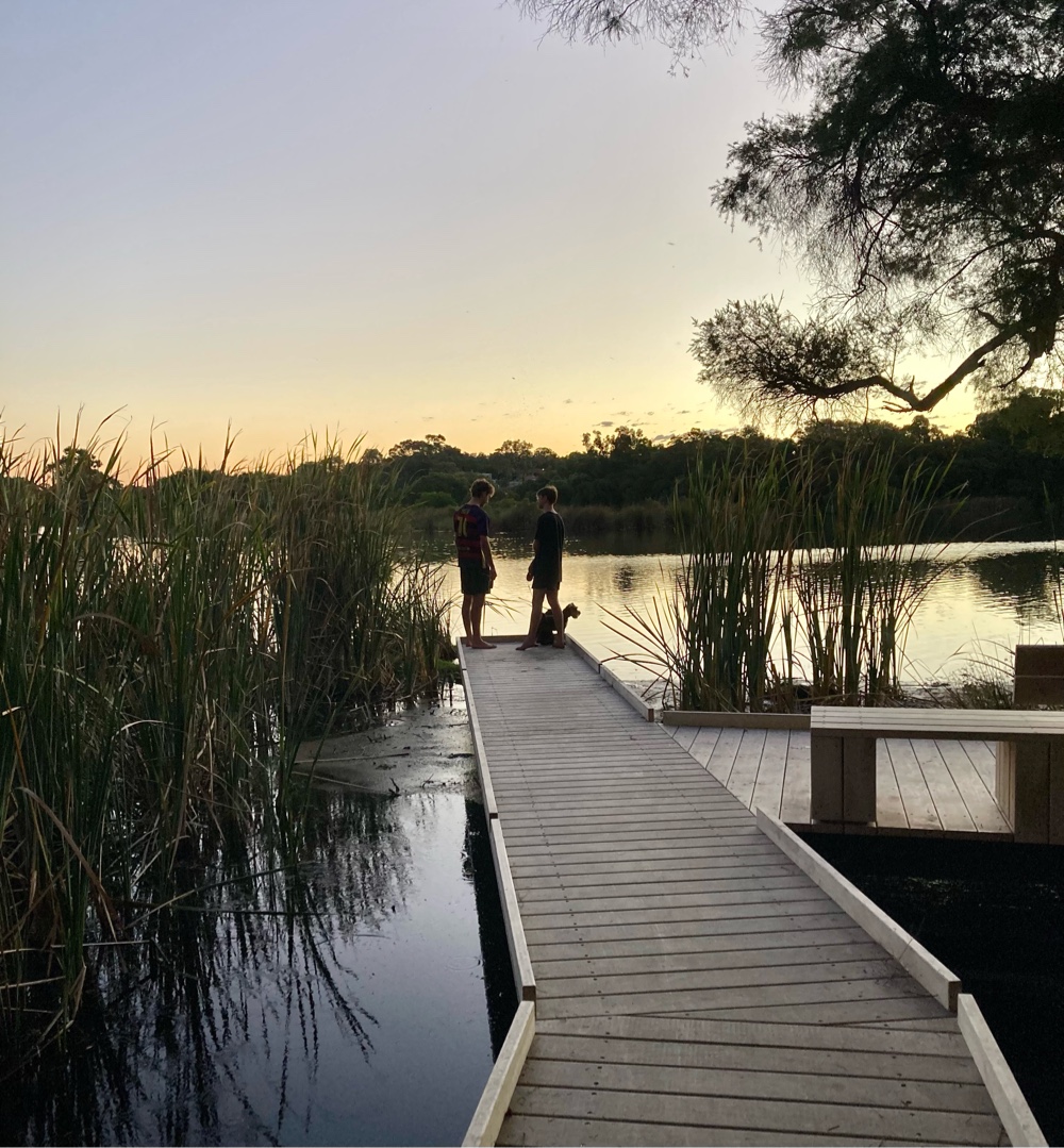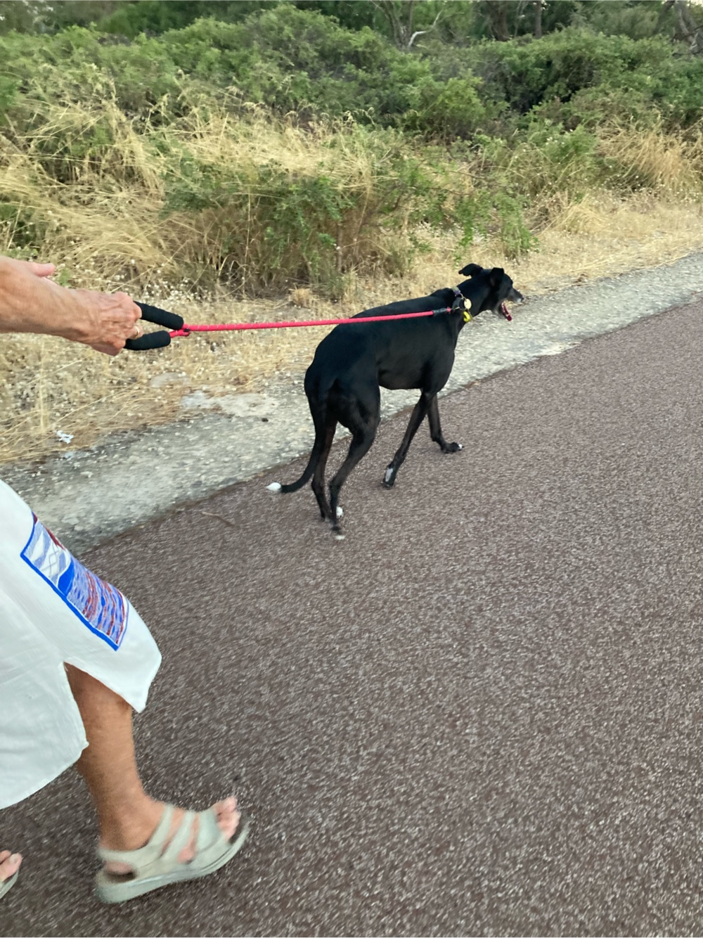 It was a very hot day and forecast to remain so. We went for a sunset walk, Maggie leading the way: