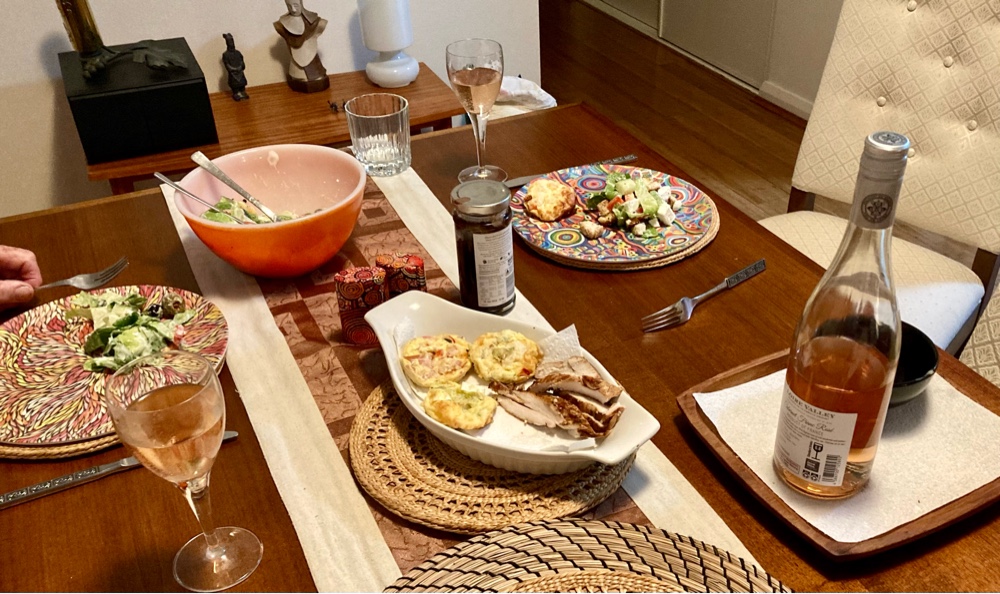 We enjoyed a tasty dinner: mini quiches and salad: