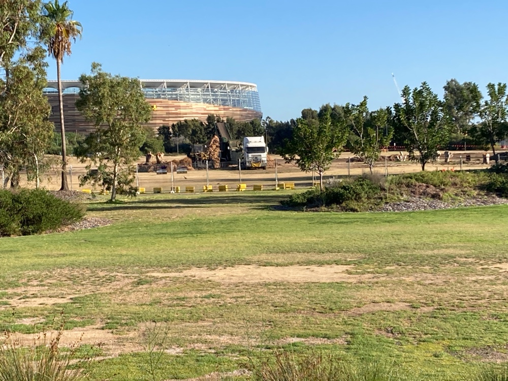 On Sunday there was a football game at the Stadium (the Asian Women’s cup with the Matildas vs the Filipino team). Spectators would normally walk across the park, having left their cars at Crown. I was interested to see if anyone tried to break down the barriers, but they all obediently followed the signs and went round.