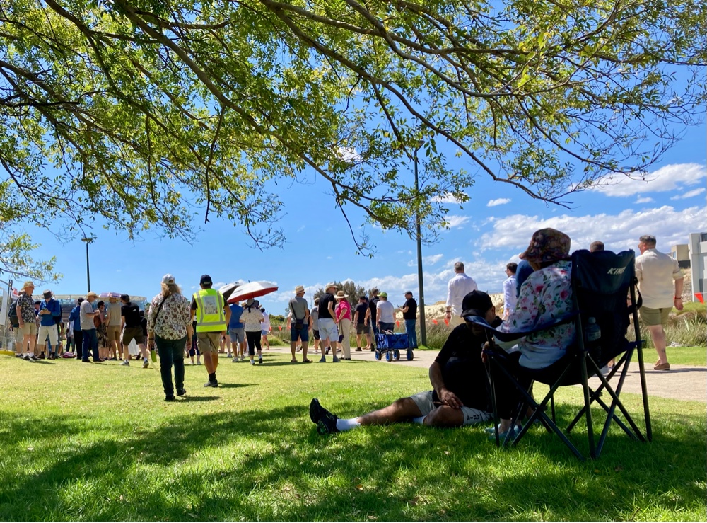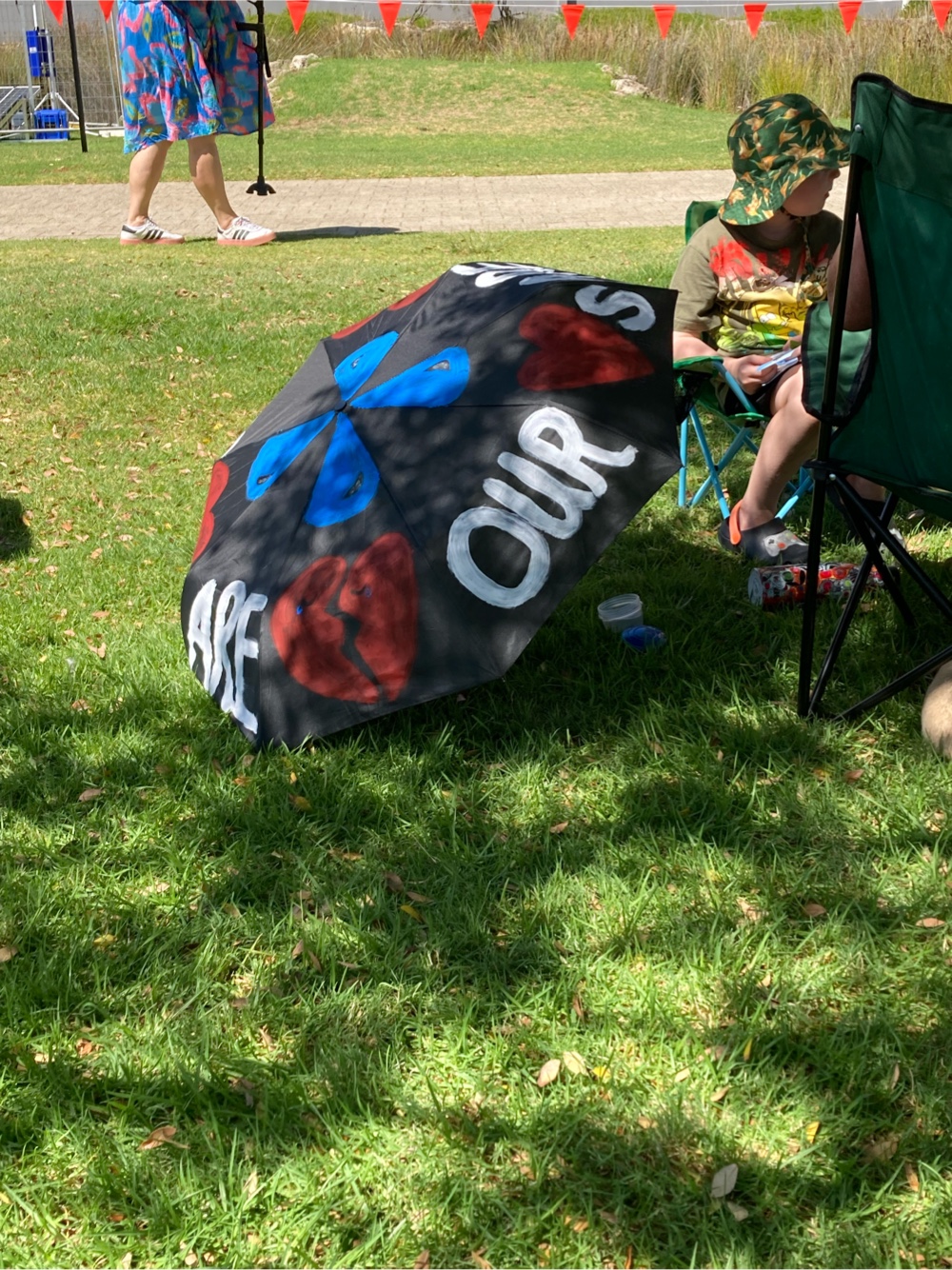 Yesterday was our last protest against the “Perth Park” development before the bulldozers move in. There was a big police presence, quite a surprise for such a group of law abiding citizens. We were all assembled in the shade of a big tree, before we were moved on a little way along the track into the sun. Was this a ploy to make it difficult? The temperature was 35 degrees.