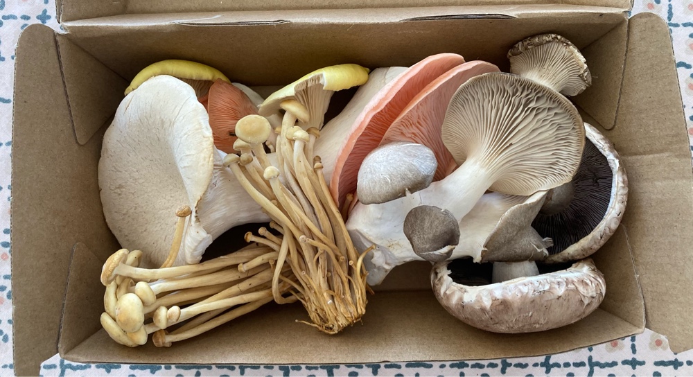 What else did I buy? A curry puff for lunch from Govindas. They are the same Govindas as the restaurant in Northbridge; apparently the chefs live here in Kalamunda. I also stocked up on fresh stone fruits: plums and white peaches. Prices were no cheaper than the supermarkets, but at least everything was really fresh. Look at this tray of mushrooms:
